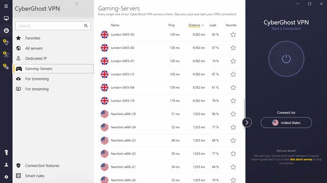 丰富的加速功能,让您玩游戏更流畅。采用超低延迟的全局线路节点,有效解决了游戏延迟高、登录困难、国内外玩家掉话等问题,在保证游戏稳定性的同时,加快了游戏运行速度。他们在美国提供具有 1 Gbps 端口速度的服务器。您可以选择每月 10 美元的 1 Mbps 速度上限帐户或每月 20 美元的无上限计划。